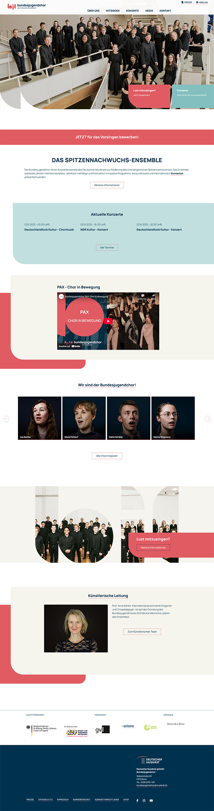 Webseite für das Auswahlensemble des Deutschen Musikrates zur Förderung des chorsängerischen Spitzennachwuchses