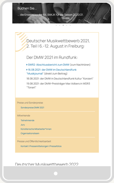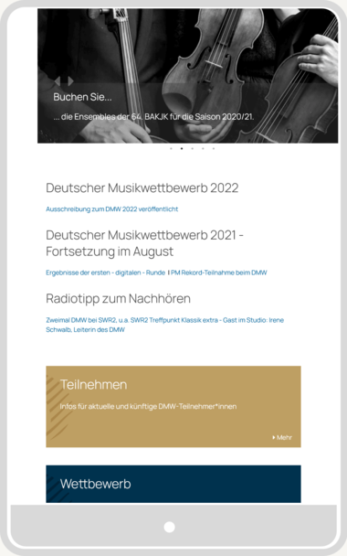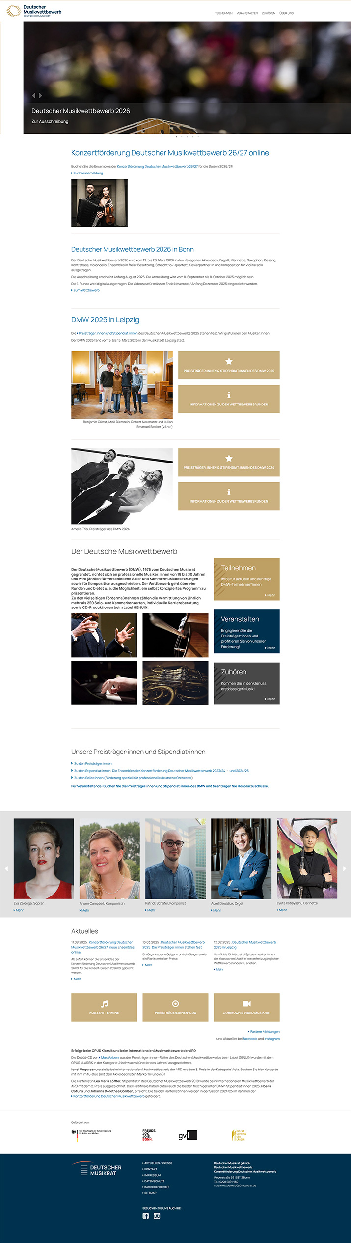 Relaunch der Webseite des Deutschen Musikwettbewerbs, einem Projekt des Deutschen Musikrates zur Förderung Musizierender an der Schwelle von Ausbildung zu Beruf