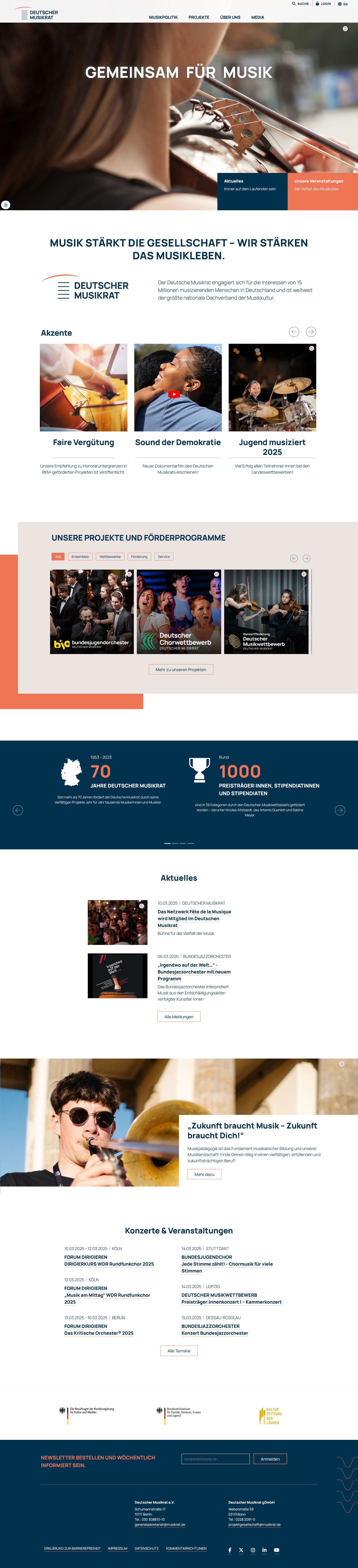 Webseite für den Deutschen Musikrat, den weltweit größten nationalen Dachverband der Musikkultur