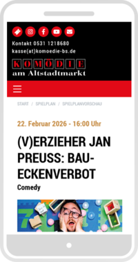 Für die aktualisierte Webseite der Komödie am Altstadtmarkt in Braunschweig setzte fixpunkt die Design-Vorlage von celisho - visual design + communication in einer aktuellen TYPO3-Instanz um. Hierbei wurden eigene Inhaltselemente programmiert, um der Redaktion das Erstellen von verschiedenen, speziell gestalteten Stücke-Vorschaukästen, Buttons mit Icons und anderen individuellen Elementen zu ermöglichen.