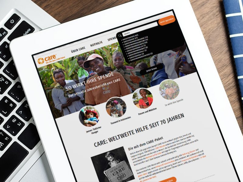 Durch die Erkennung des Wortstammes können sämtliche Formen des Begriffs gesucht werden (Suchbegriff "Spende": Spendenformular, Spenden-Shop, Testamentspende etc.)